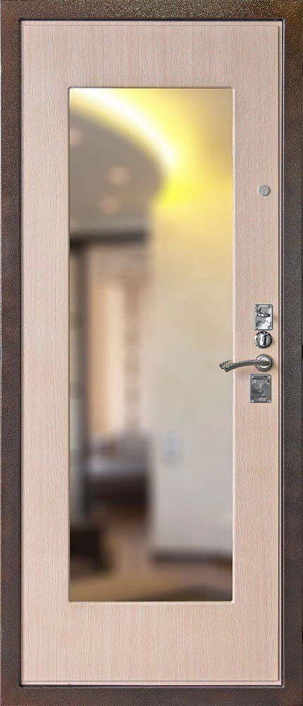 Прочная металлическая Дверь с зеркалом DZ383 по цене от 25 000 руб. под заказ в любой комплектации. Вы можете выбрать материал, замки, цилиндры и многое другое. Производим сами! Быстрая доставка и установка в Коломне.