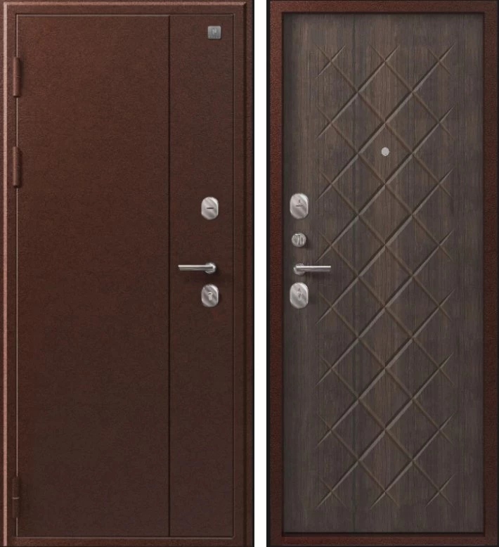 Надежная входная Дверь V-02 медь антик - венге премиум класса по цене 32 350 руб. Большая толщина стали защитит от проникновения в ваш дом, квартиру или коттедж. Используется очень качественная фурнитура: замки, цилиндры, ручки, защелки. Покрытие и отделка двери изготовлено под внимательным контролем производителя. Дверь имеет долгий срок службы и гарантию.